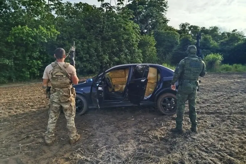 Durante o patrulhamento, os policiais visualizaram um veículo Chevrolet Astra em alta velocidade em uma estrada frequentemente usada para contrabando.