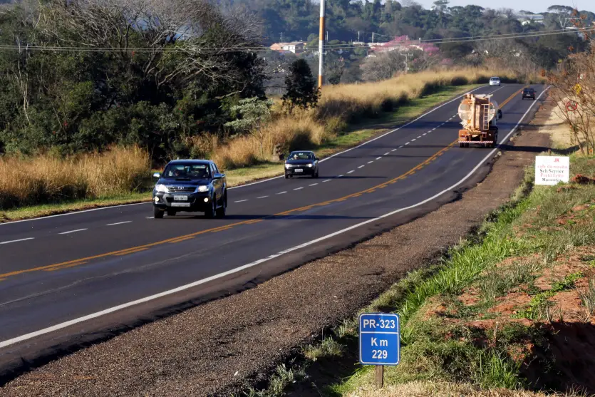 A duplicação está prevista para toda a PR-323. São quase 160 km de rodovia que receberão mais uma faixa de tráfego em cada sentido.