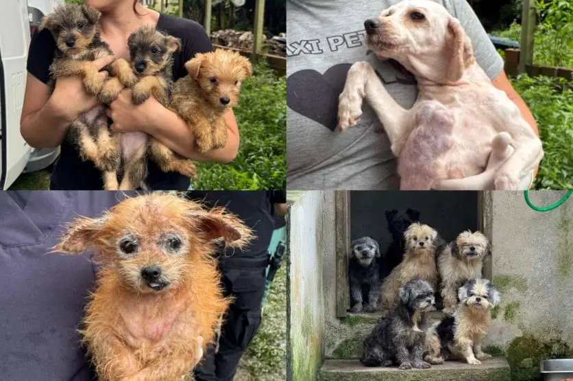 “Muitos dos resgatados estavam destinados à venda e o local operava parcialmente como canil comercial, com outra parte caracterizada por acúmulo de animais. Os animais viviam em meio a fezes e urina, com privação de liberdade e em estado de saúde debilitado, com ferimentos e deterioração”, explica.