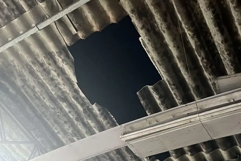 O proprietário da empresa soube dos danos no telhado e no cadeado do estabelecimento. Ele recebeu orientações sobre as providências cabíveis.