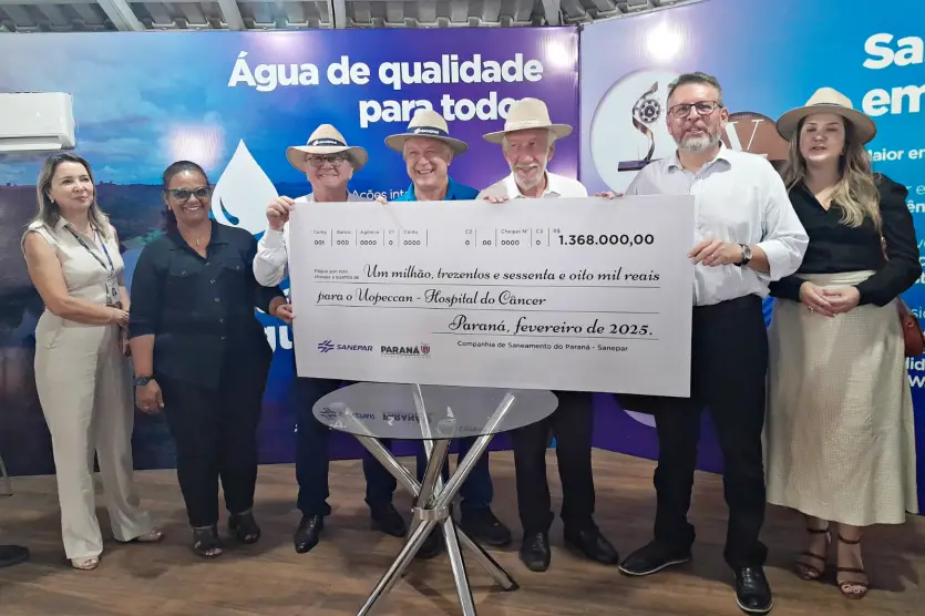 A entrega do cheque foi feita pelo vice-governador, Darci Piana, e pelo diretor-presidente da Sanepar, Wilson Bley. Os diretores da Uopeccan, Leopoldo Furlan e Ciro Kreuz, receberam o repasse durante o Show Rural Coopavel 2025. No ato do repasse financeiro, a Sanepar recebeu um certificado de reconhecimento pelo compromisso humanitário direcionado à União Oeste Paranaense de Estudos e Combate ao Câncer (Uopeccan).