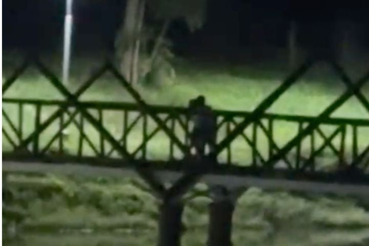 A passarela tem pouca iluminação. Ainda assim, é possível ver o que está acontecendo, mesmo a uma distância considerável. “Rapaziada, não é por nada não, mas tá rolando (…) ali na ponte, hein”, diz autor do vídeo, na gravação.