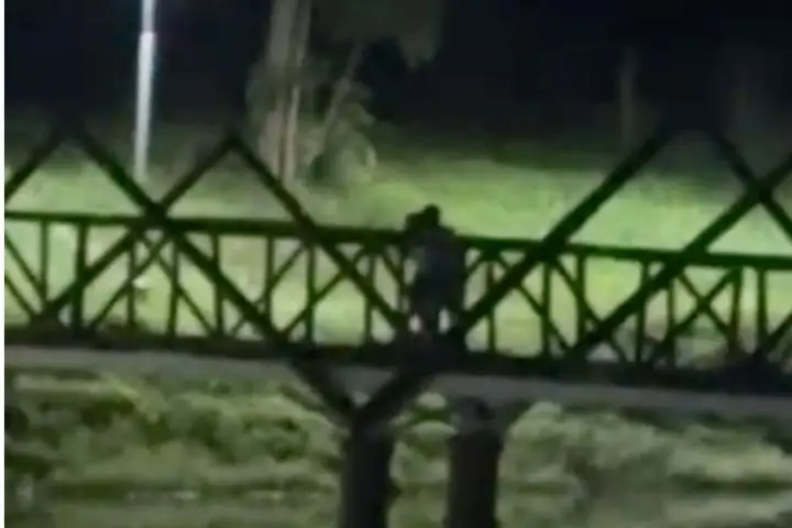 O casal aparece sobre a ponte que liga as margens do lago. Não é possível precisar a hora em que houve o registro, porém, as imagens deixam evidente que era noite ou madrugada.