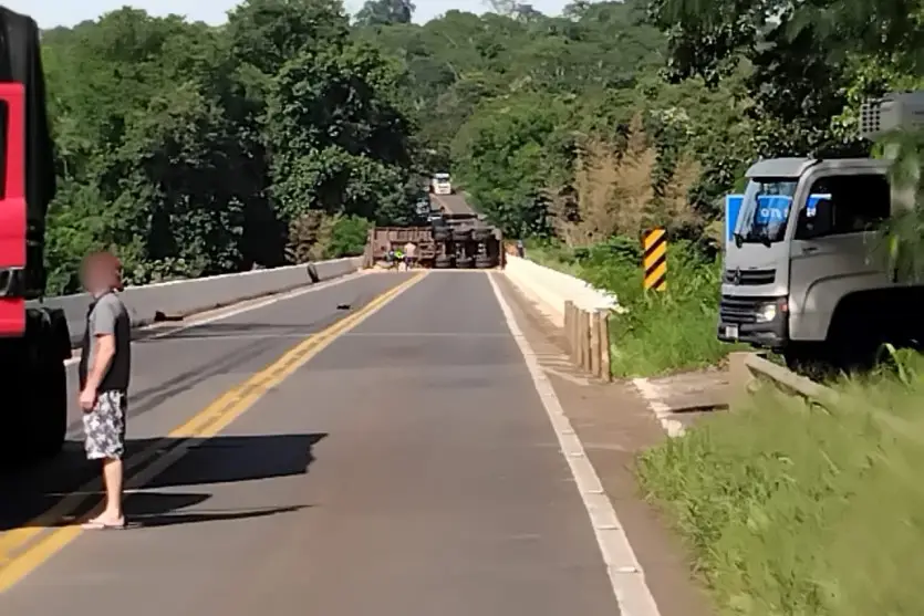 A rodovia PR-323 ficou bloqueada no trecho da ponte sobre o rio Ivaí, entre Cianorte e Doutor Camargo após um tombamento de carreta na manhã desta segunda-feira (17). A princípio o veículo teria tombado logo no início da ponte, interrompendo o trânsito de ambos os sentidos da rodovia.