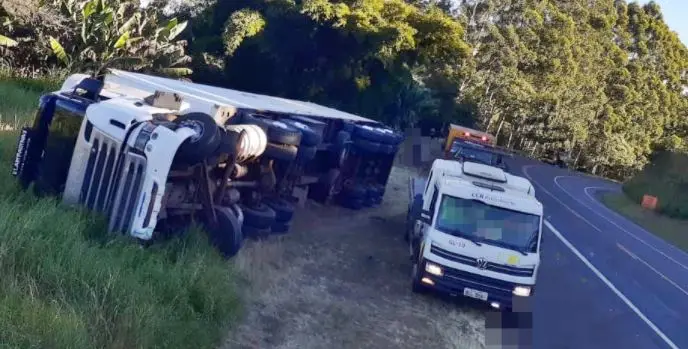 O acidente acontece no KM 317, após o motorista perder o controle da direção em uma curva.