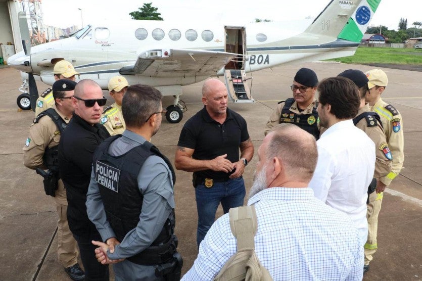 O secretário Hudson Leôncio viajou junto com o comandante-geral da PMPR, Coronel Jefferson Silva, e o delegado-geral da PCPR, Silvio Jacob Rockembach, para coordenar as ações policiais na cidade