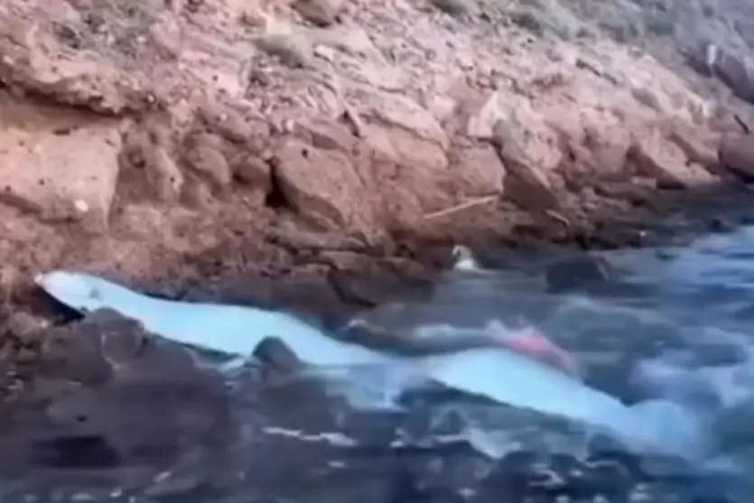 Turistas que passeavam pelo local ficaram surpresos ao avistar o peixe e, em seguida, uma pessoa filmou um pescador tentando devolvê-lo ao mar.