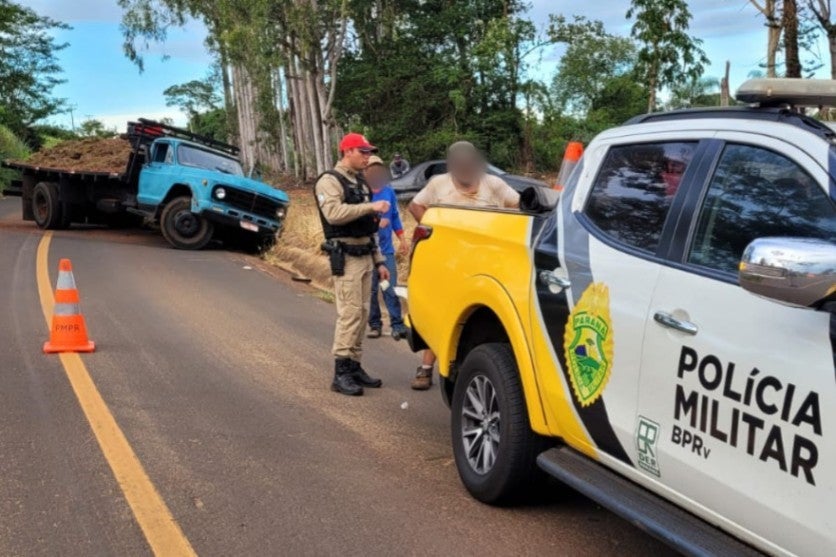 Caminhão invade pista contrária e causa colisão na PR-576, em Porto Rico
