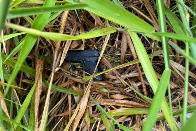 A Polícia Militar (PM) encontrou, na noite de sexta-feira (21), um simulacro de arma de fogo em um matagal onde uma dupla bateu um carro roubado, em Umuarama. Segundo o 25º BPM, houve a apreensão de um menor na ocorrência, enquanto o outro suspeito segue foragido.