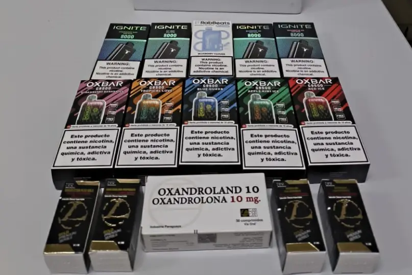 Entre os itens apreendidos como contrabando em Cidade Gaúcha estavam 10 cigarros eletrônicos de diferentes marcas e frascos de substâncias identificadas como anabolizantes.