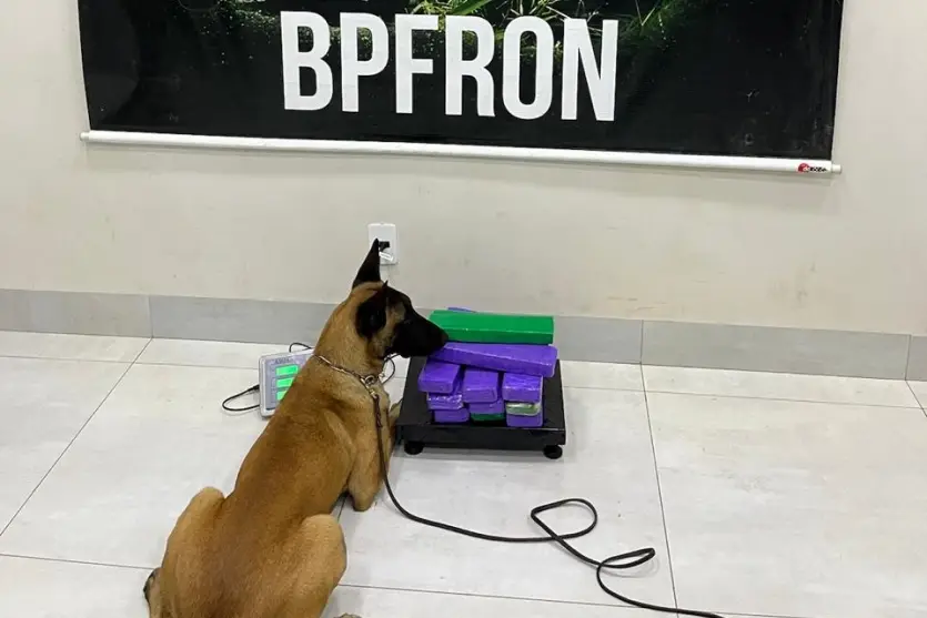 O cão de faro Oslo auxiliou na vistoria e indicou a bagagem suspeita, que estava com a passageira na poltrona 41. Questionada, a jovem confessou que transportava a droga e revelou que seu destino final era Maringá.