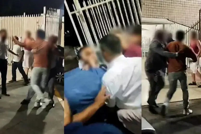 Imagens que circulam nas redes sociais mostram um grupo de homens discutindo, até que a situação foge do controle e eles partem para a pancadaria fora da igreja evangélica. Os envolvidos trocam socos e empurrões, e a confusão se espalha para o meio da rua, chamando a atenção de quem passava pelo local. Assista: