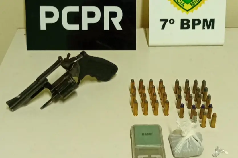 Durante buscas no imóvel, os policiais localizaram um revólver calibre .357 Magnum carregado, diversas munições de diferentes calibres, além de porções de maconha e cocaína e uma balança de precisão. O suspeito admitiu ter tentado se desfazer da arma para evitar a prisão.