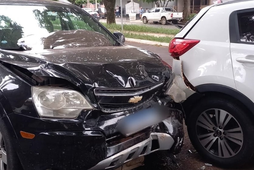 De acordo com a Polícia Militar, uma GM/Captiva preta, ano 2009, seguia em direção à Praça Sete de Setembro quando a condutora, de 29 anos, perdeu o controle do veículo e atingiu a traseira de um Kia/Sportage branco, ano 2013, que estava estacionado. O impacto empurrou o Sportage contra um VW/Gol azul, ano 1998, também parado na via.