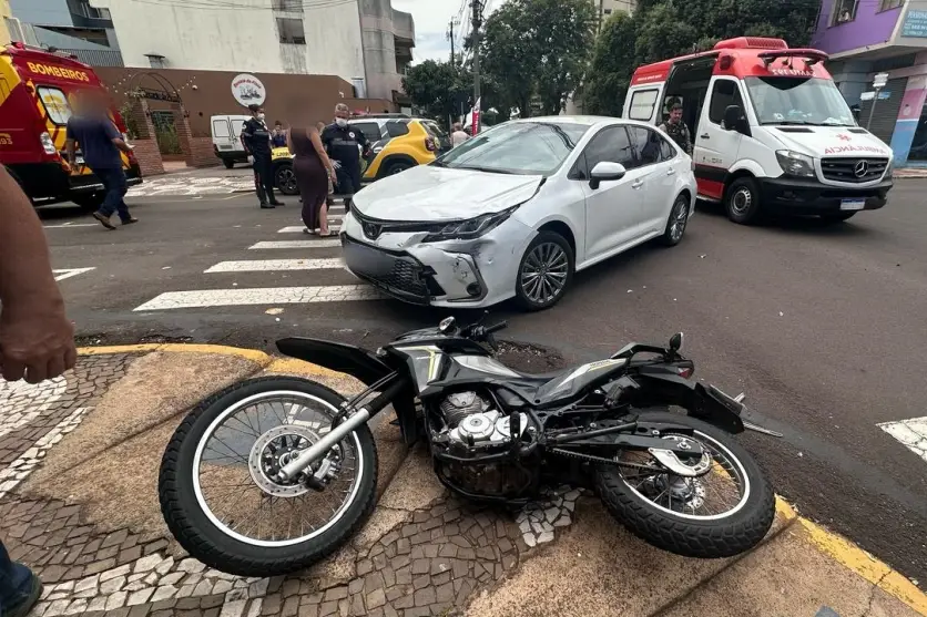 Um motociclista, com cerca de 35 anos, fraturou a perna em um acidente ocorrido no início da tarde desta segunda-feira (10), no Centro de Umuarama. Ele seguia pela rua Ministro Oliveira Salazar quando colidiu com um automóvel que seguia pela rua Arapongas.