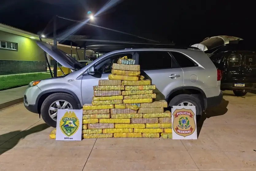A Polícia Federal (PF) e o Batalhão de Polícia de Fronteira (BPFron) apreenderam 346 kg de maconha em Guaíra (PR) nesta quinta-feira (6). Durante patrulhamento, as equipes identificaram um veículo Kia Sorento em alta velocidade e suspeito de transportar ilícitos.
