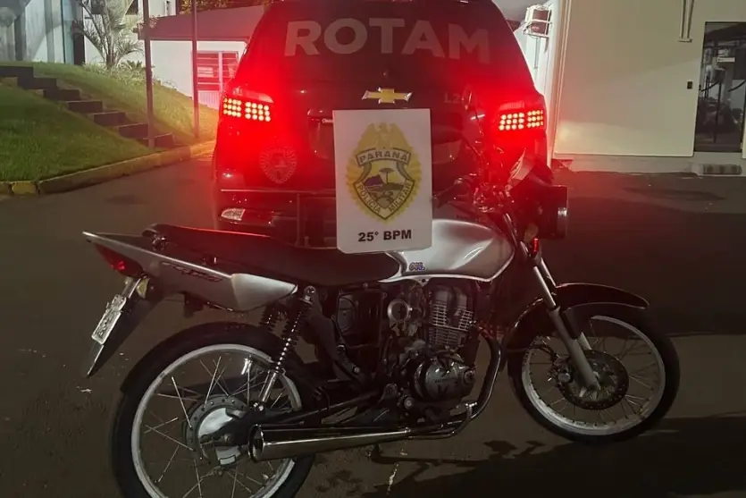 Os policiais identificaram os dois suspeitos e localizaram junto a eles uma motocicleta Honda CG 150, de cor prata. Após verificações nos sistemas de segurança, a equipe constatou que o veículo estava com alerta de furto desde setembro de 2024, em Umuarama.