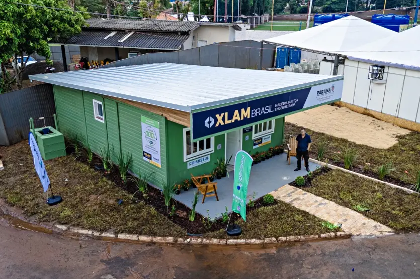 “Construída com madeira de florestas plantadas (sustentável e renovável), essa casa promete revolucionar o conceito de moradia. O objetivo é contemplar especialmente a população em situação de vulnerabilidade no meio rural”, discursou.