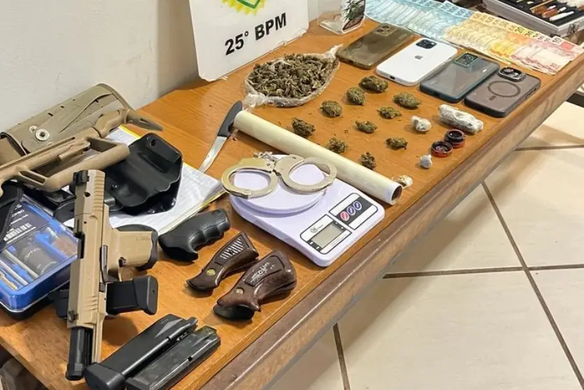 Entre os detidos estavam indivíduos apontados como responsáveis pela comercialização das drogas. Em uma das residências, os policiais localizaram objetos que indicam possível envolvimento em crimes praticados por grupos conhecidos como “piratas do asfalto”, que atacam veículos de carga.