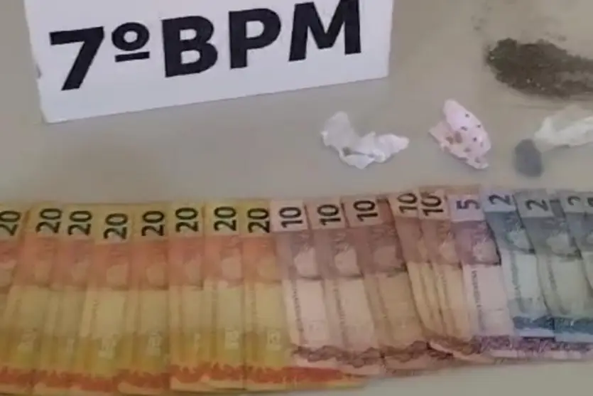 Diante do flagrante, a equipe policial entrou na residência, prendeu o denunciado e realizou buscas no local, onde encontrou um pote com 10 gramas de maconha. O suspeito estava com R$ 590,00 distribuídos nos bolsos.
