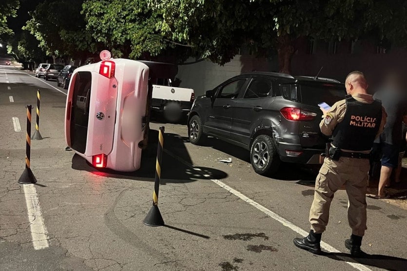 No fim da tarde deste sábado (15), um carro VW Gol colidiu na traseira de um Ford EcoSport estacionado e tombou em seguida, na avenida Portugal, em Umuarama. O condutor, um homem de 30 anos, apresentava sinais de embriaguez e acabou preso.