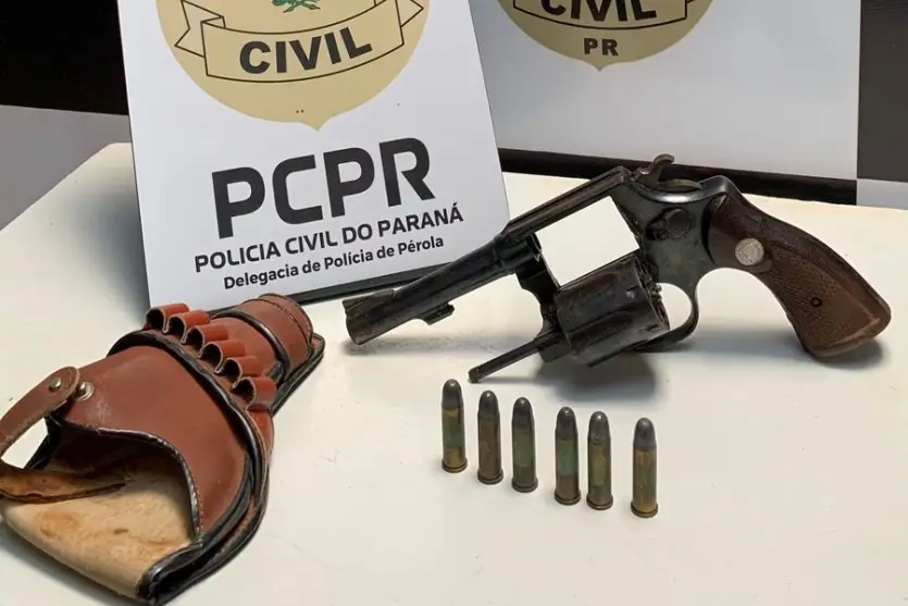Diante dos fatos, a PCPR e a PM conduziram o homem para a Delegacia de Polícia de Pérola. No local, a equipe civil lavrou em flagrante o delito de posse irregular de arma de fogo de uso permitido. O crime está tipificado no artigo 12 da Lei 10.826/03. Além disso, os policiais entregaram o revólver e as munições na Delegacia.