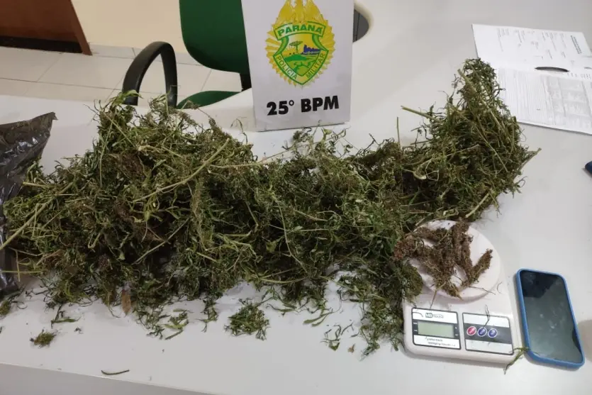 Questionado, o suspeito negou estar comercializando a droga, mas admitiu ter mais entorpecentes em casa e autorizou a busca domiciliar. Na residência, os policiais apreenderam 344g de maconha dispostas no chão para secagem, além de uma balança de precisão e um celular iPhone 13 azul. O jovem confessou já ter vendido algumas porções, mas alegou ter desistido do tráfico.
