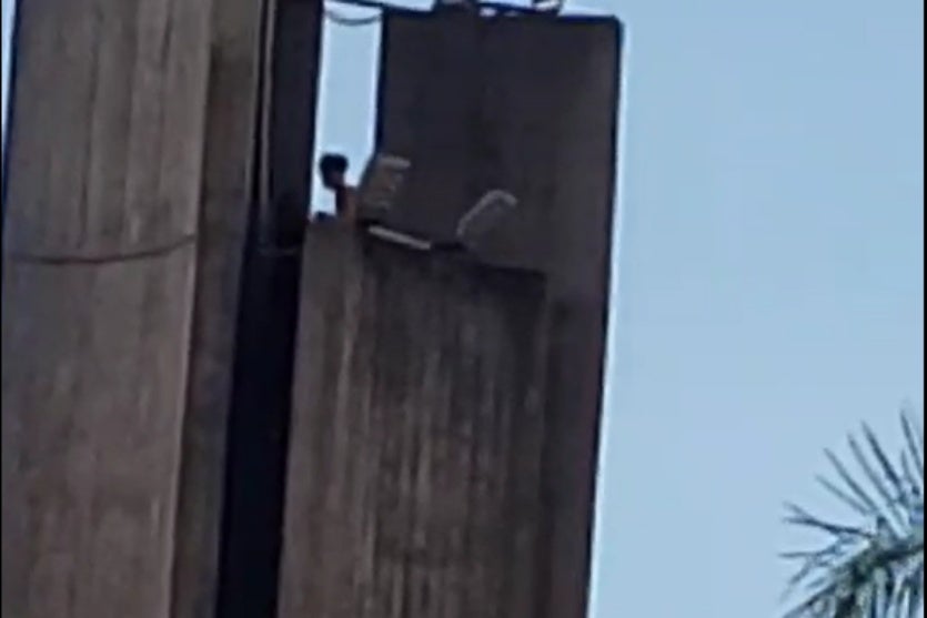 Adolescentes sobem em obelisco na Praça Santos Dumont em Umuarama