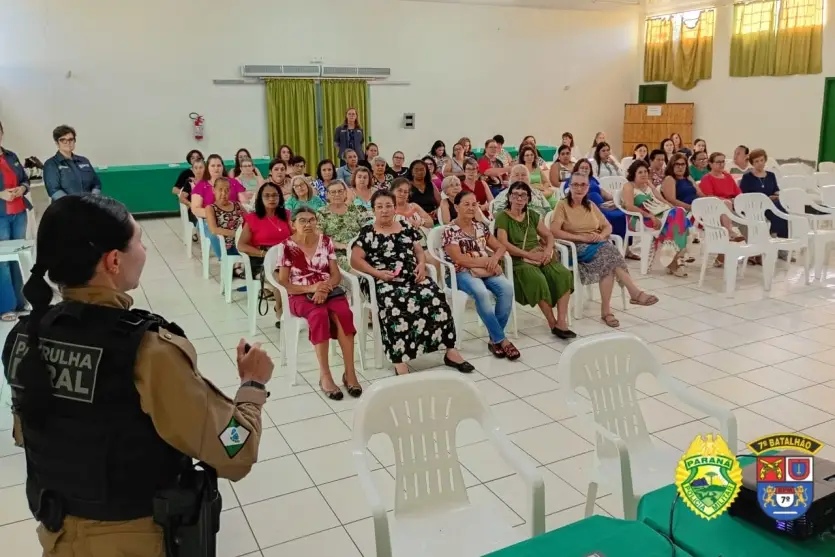 A Patrulha Rural do 7º Batalhão da Polícia Militar (BPM) realizou, nesta terça-feira (19), a palestra sobre os desafios da PMPR no enfrentamento do feminicídio, no Sindicato Rural de Cidade Gaúcha. O evento marcou o início do ciclo de palestras de 2025 do Programa Mulher Segura. A campanha visa conscientizar mulheres sobre a violência doméstica e familiar, seus impactos e as ferramentas disponíveis para proteção.