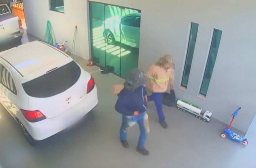 No entanto, a esposa do proprietário estava na casa. Ela avistou os dois homens pulando o muro e tentou fechar a porta. Porém, a moradora pensou que um deles estava portando arma de fogo e abriu a porta.