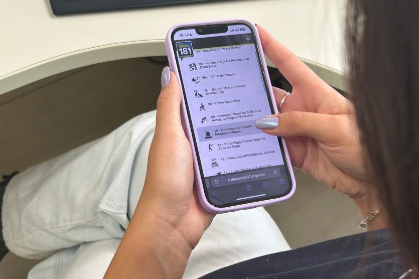 A Secretaria de Segurança Pública do Paraná (Sesp) informa que a população pode denunciar a venda de cigarros eletrônicos através do telefone 181. A Sesp implementou a nova funcionalidade no Disque-Denúncia 181 recentemente.