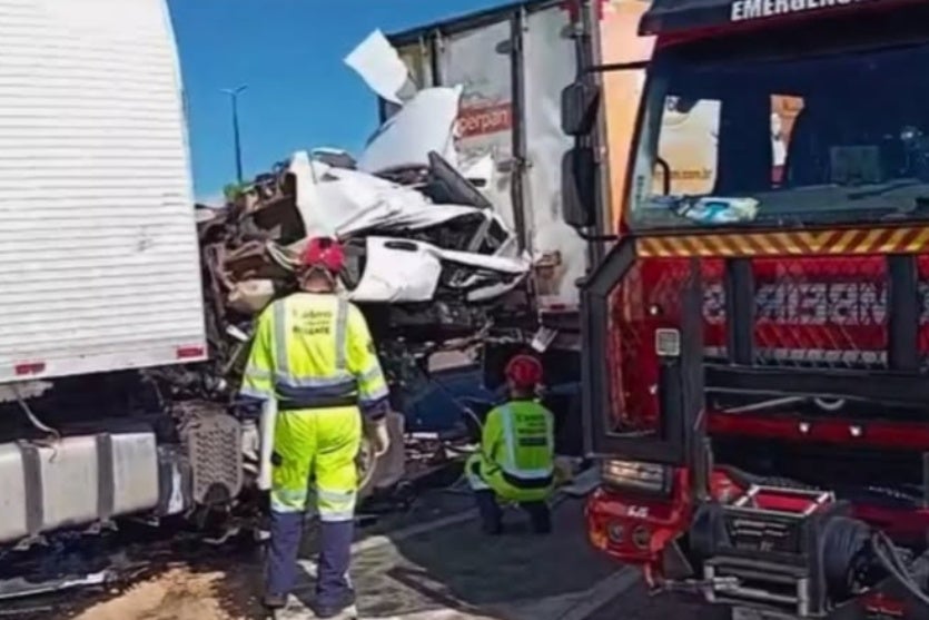 No local, os bombeiros realizaram a estabilização dos veículos para garantir a segurança no resgate. Duas vítimas ficaram presas nas ferragens. O motorista de um dos caminhões não resistiu aos ferimentos e morreu antes da chegada do socorro. A outra vítima foi retirada com vida e encaminhada para atendimento médico.
