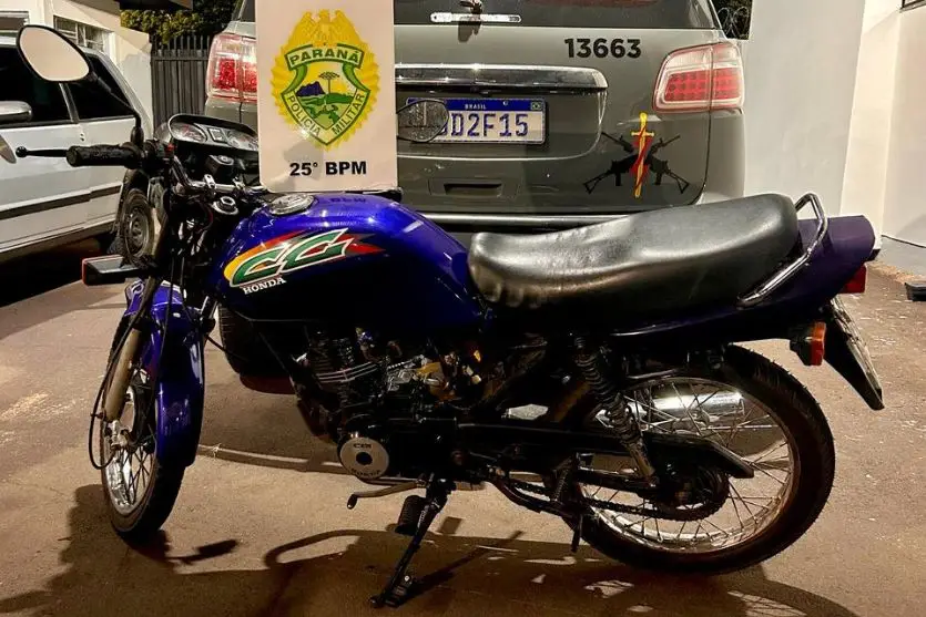 Durante patrulhamento, os policiais avistaram a moto estacionada em via pública e, ao checar a numeração do motor, constataram que não era o original. O propulsor pertencia a outra motocicleta, registrada como furtada em 7 de novembro de 2016, em uma estrada rural no sentido de Terra Roxa (PR).
