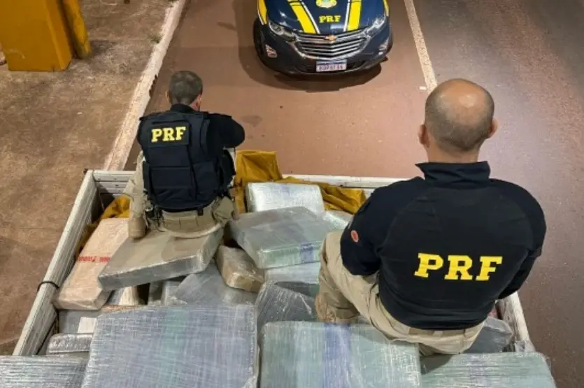 Ao retirarem a lona que cobria a carga, os policiais encontraram diversos fardos de maconha ocultos na parte traseira da carroceria, misturados aos sacos de polvilho. Após a pesagem, a droga totalizou 2.096 quilos.
