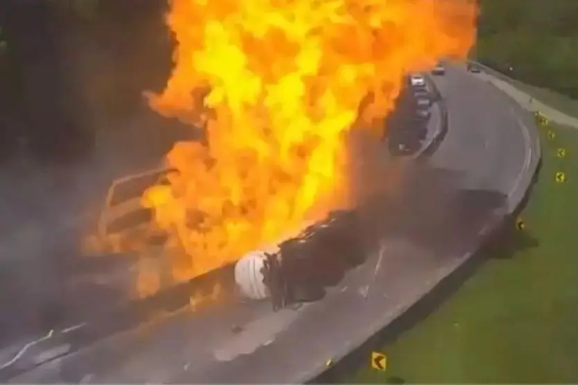 A ocorrência envolveu o tombamento de uma carreta, com registro de incêndio, e envolveu outras duas carretas e 22 veículos de passeio. Cinco pessoas foram atendidas com queimaduras.