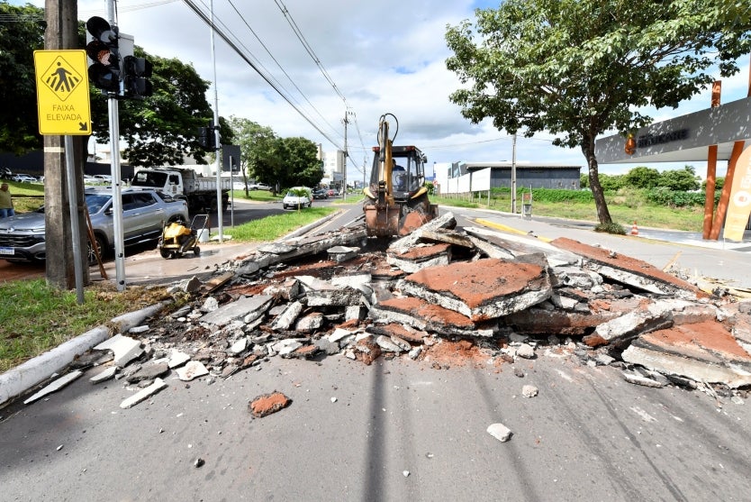 As travessias elevadas estão sendo substituídas por semáforos na avenida Paraná, na região do Lago Aratimbó, em Umuarama. Nesta segunda-feira (7) a Secretaria Municipal de Obras precisou interromper o trânsito de veículos no local para a remoção das passarelas elevadas.