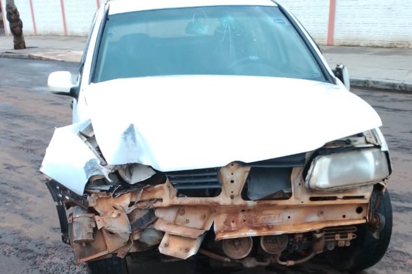 A batida causou danos à parte frontal do carro e ao poste de energia elétrica. O impacto foi forte o suficiente para mobilizar socorristas e a polícia.