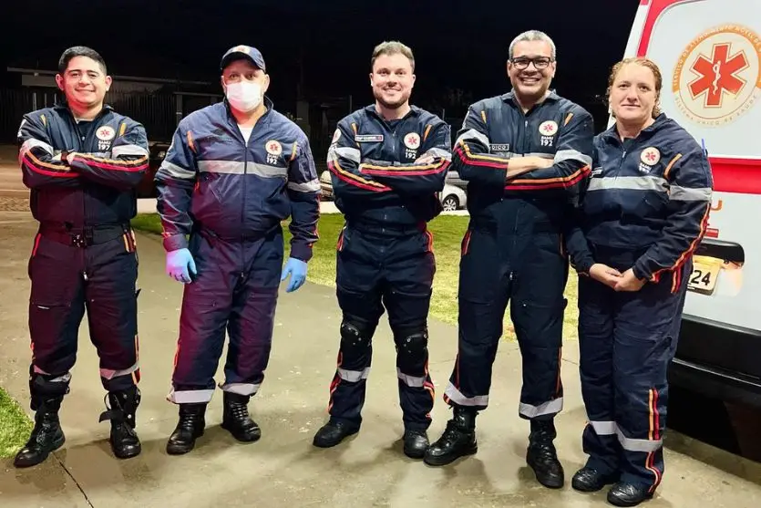 A equipe formada pelo médico Fábio Roza, enfermeiro Gabriel, condutor Vandeson, além do condutor Alessandro e da técnica de enfermagem Deise da USB 12, prestou toda a assistência necessária antes de concluir o trajeto até o Hospital Universitário.