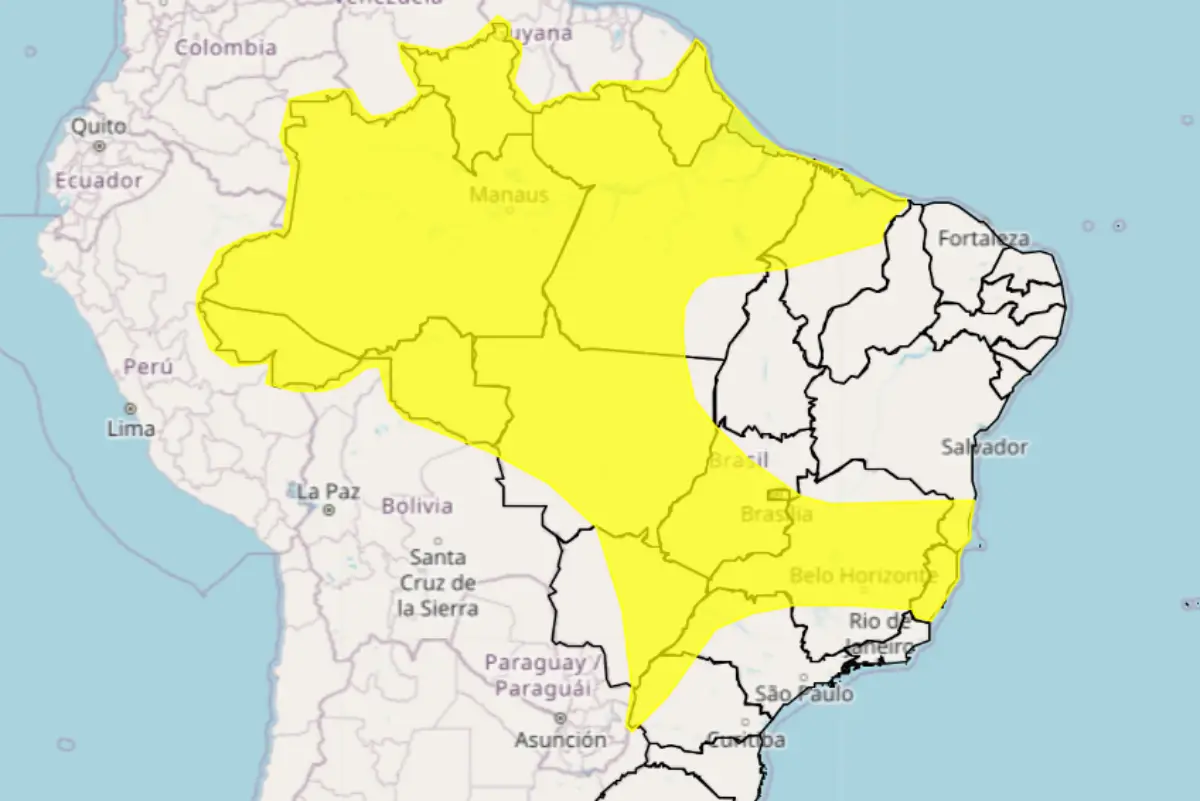 O Instituto Nacional de Meteorologia (Inmet) emitiu, nesta sexta-feira (25), um alerta amarelo para chuvas intensas que devem atingir 16 estados do Brasil, incluindo o Paraná. O aviso entra em vigor às 10h deste sábado (26) e permanece ativo até às 10h de domingo (27).