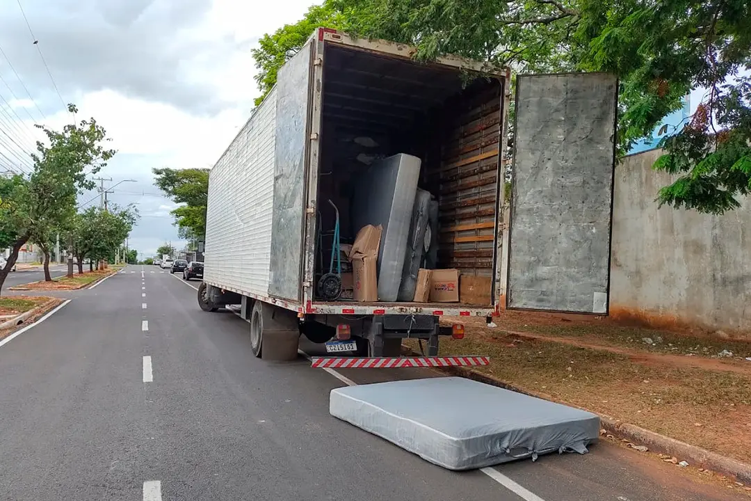 No local foi flagrada uma caminhonete com adesivos de outra empresa de revenda de sofá e que já estava sendo carregada com um jogo de sofá. O homem que estava carregando os sofás informou que havia comprado, porém não tinha nota fiscal que comprovasse a legalidade da compra.