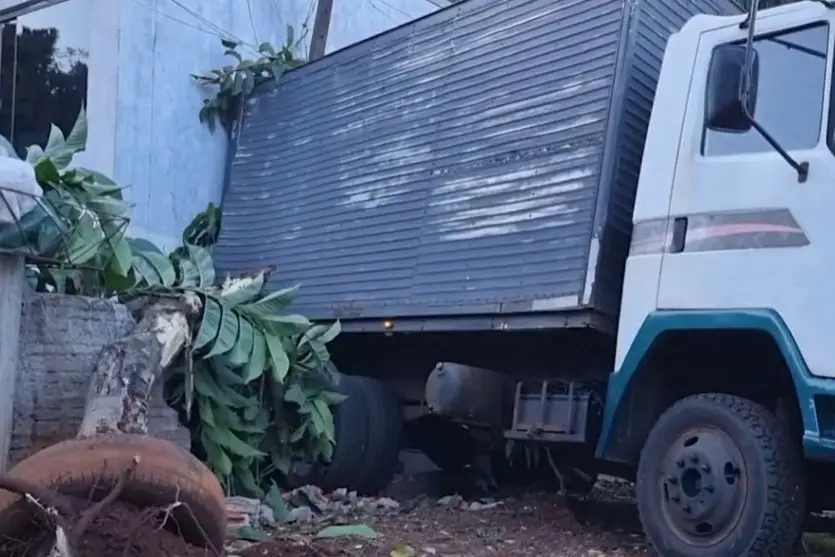 Um caminhão desgovernado provocou um grande susto no fim de semana em Cascavel. O veículo invadiu a calçada e o pátio de um imóvel residencial, derrubando uma árvore e causando danos ao portão e a uma das paredes da propriedade.