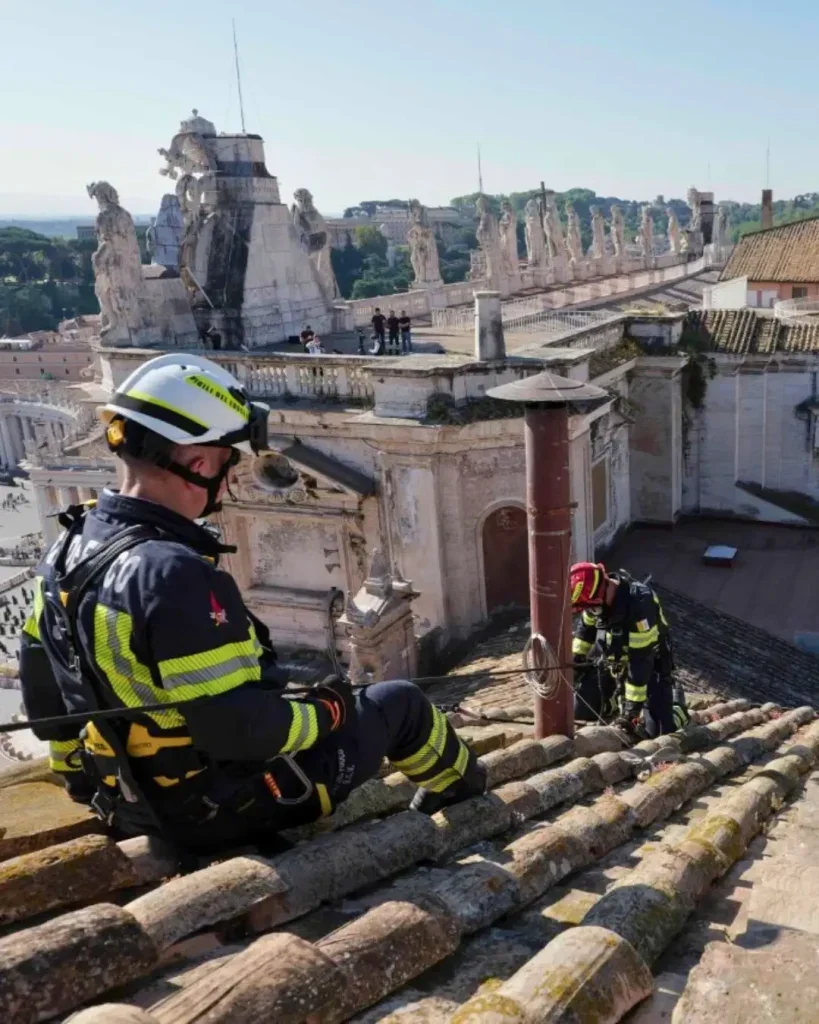 A estrutura, um cano de cor ferrugem, foi fixada acima das telhas de terracota da Capela Sistina. A chaminé foi colocada em posição estratégica: é visível da Praça de São Pedro, onde milhares de fiéis devem se reunir para acompanhar, a cada nova sessão de votação, o anúncio simbólico feito pela fumaça.