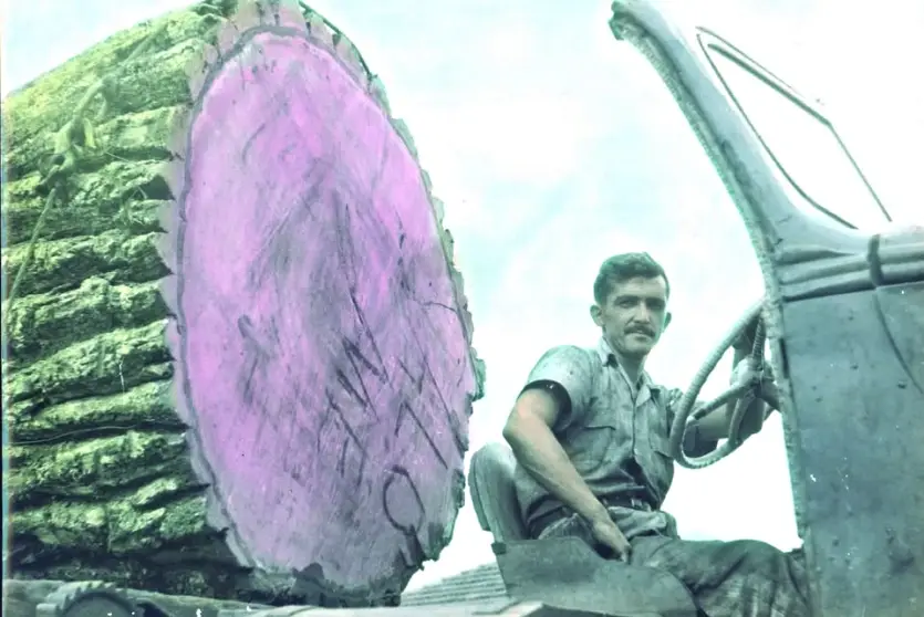 Esta imagem retrata fielmente a riqueza das antigas florestas que cobriam o território onde foi construída Umuarama: imaginem o peso e a quantidade de madeira que uma peroba dessas iam parar nas serrarias! Ocupava, sozinha, um caminhão inteiro!!! Pois é, milhões dessas árvores gigantes foram derrubadas para fundar a Capital da Amizade... Fotos: Acervo de Italo Fábio Casciola