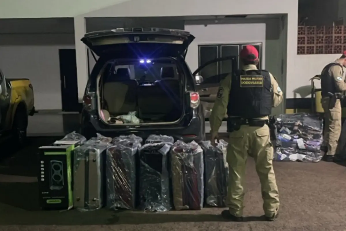 Segundo nota da BPRv, durante a vistoria, os agentes encontraram no interior do automóvel 74 malas de viagem. Os produtos haviam sido adquiridos no Paraguai e não possuíam qualquer comprovação de regularização fiscal ou aduaneira — caracterizando assim o crime de descaminho e foram apreendidos pelo BPRv. A mercadoria tinha como destino final uma loja de revenda na cidade de Maringá.