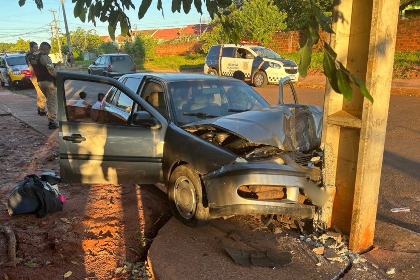 Motorista bate o carro em poste após discussão com passageira em Iporã