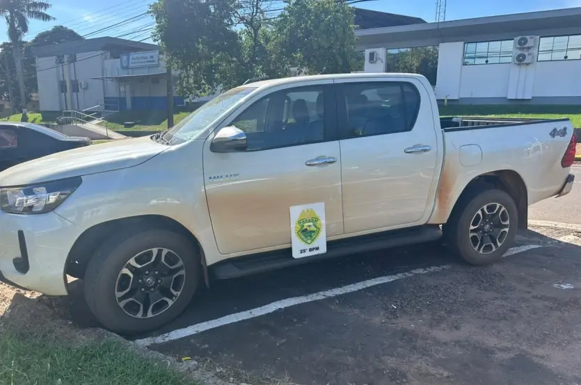 A situação aconteceu nesta sexta-feira (16) e a PM divulgou uma nota com informações sobre o fato. Um denunciante anônimo entrou em contato com o 25º Batalhão de Umuarama para informar que havia uma Hilux aparentemente abandonada em uma área de mata perto do distrito.