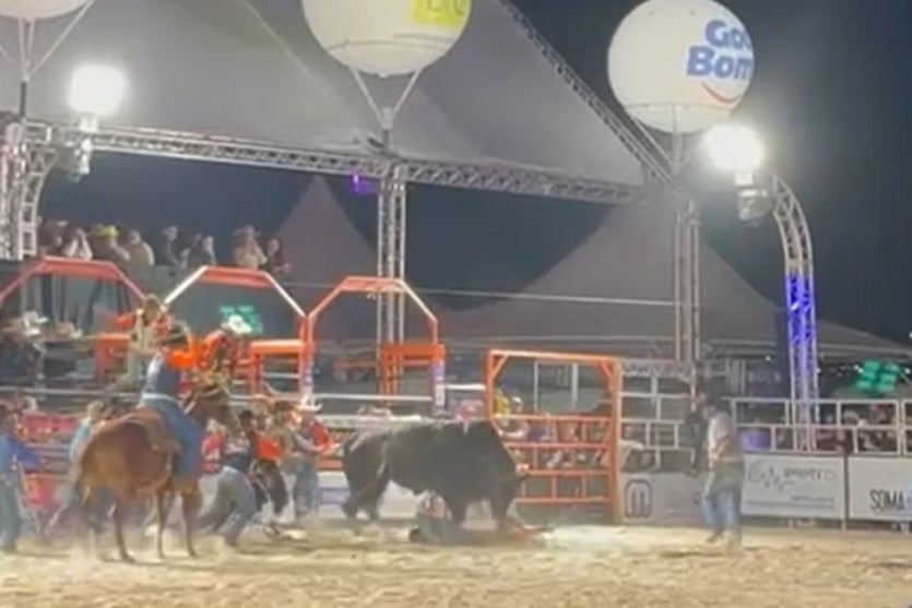 Um vídeo do momento foi gravado por um espectador na arquibancada e circula nas redes sociais. As imagens mostram o peão sendo puxado pelo animal por vários metros da arena. Em nota oficial, os organizadores classificaram as cenas como “impressionantes”, mas afirmaram que, “graças a Deus”, o rapaz passa bem.