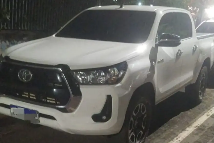 Uma caminhonete Toyota Hilux branca, ano 2022, foi recuperada pela Polícia Militar na noite de segunda-feira (19), após tentativa de furto no Centro da cidade. O caso ocorreu por volta das 20h50, na Rua Independência, nas proximidades de uma igreja onde era realizada uma missa.