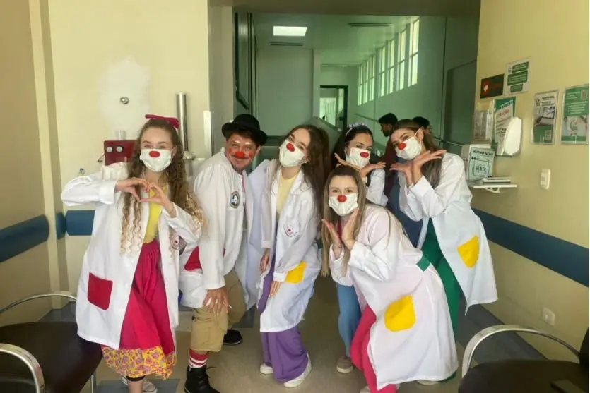 No sábado pela manhã, os corredores do hospital foram tomados pela leveza dos Uniparlhaços — grupo formado por estudantes de Medicina da Universidade Paranaense (Unipar) — e do Palhaço Carlito, personagem do voluntário Carlos Antônio Zago.