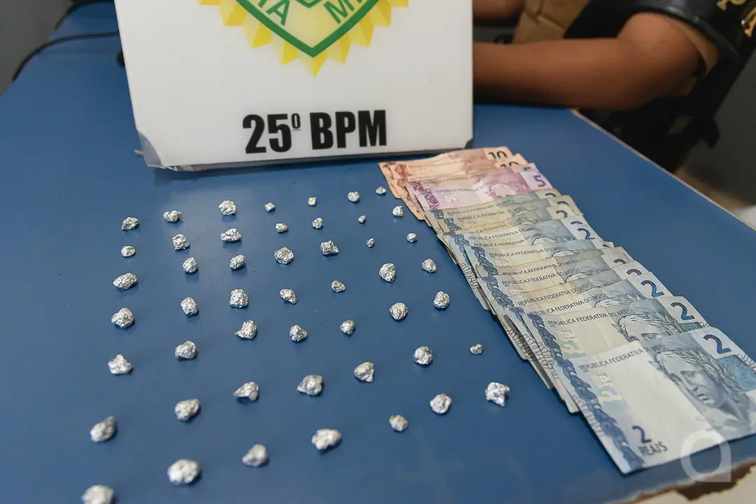 A droga contabilizou 49 pedras e o dinheiro R$ 64 reais.